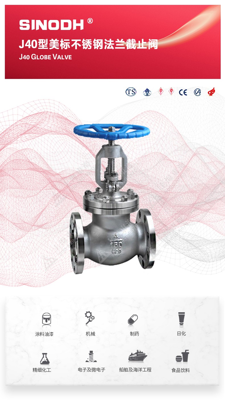 J40型美标不锈钢截止阀,为乐竞官方网站自主研发生产。本产品的设计制造符合美国国家标准ANSIB16.34,美国石油学会标准AP1 6D和AP I 600要求,产品结构紧凑密、刚性好、封性性能优秀是一种最常见的启闭阀,利用闸板的上下工作来接通(全开)和截断(全关)管道中的流体介质。